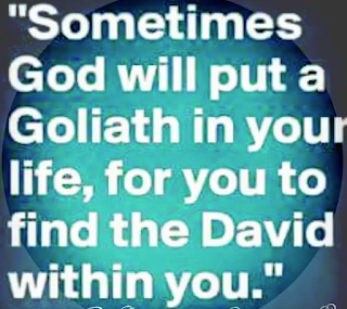 Sometimes, the Goliath in my life is my mental health. Sometimes, my physical health. Sometimes, I am my own Goliath through my thoughts and actions.
